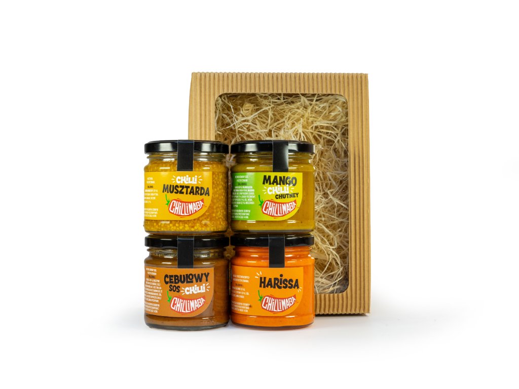 Harissa, Mango chilli chutney, Chilli Musztarda i Cebulowy sos z chilli.